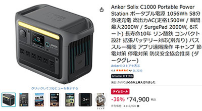 【タイムセール】Anker Solix C1000 Portable Power Station登場!