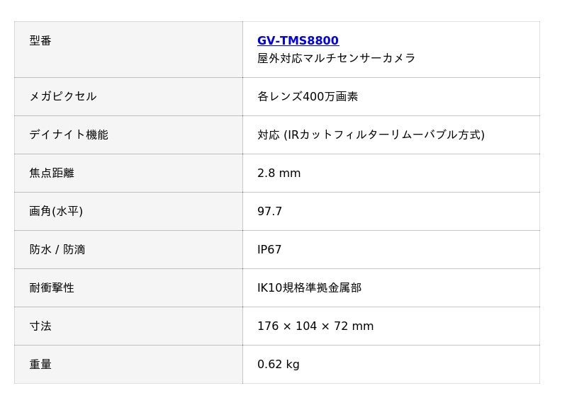 GV-TMS8800屋外対応2眼マルチセンサーカメラ