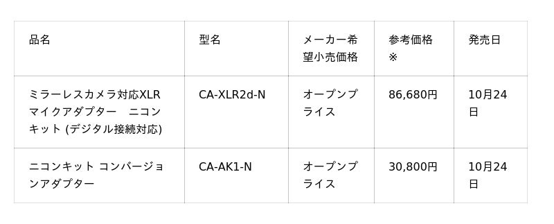 「ニコン ZR」対応XLRマイクアダプター『CA-XLR2d-N』を発売。デジタルアクセサリーシュー経由でのデジタル音声伝送を協業にて実現。