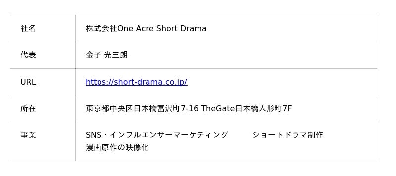 株式会社OneAcreShortDrama会社概要