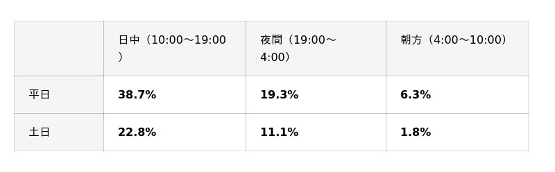 今回公表した約12万件の受検データ(2025年7月1日~9月30日)*を分析したところ、平日日中以外の受検が65%を占めていることが判明しました。特に土日だけで35%の受検が集中しており、日程調整関係なく、面接を“空いている時間に受けられる”環境が、候補者から高く支持されていることが伺えます。