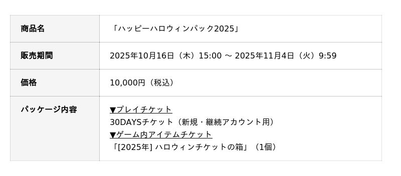 ハロウィンを記念して、キャラクターの育成などに便利なアイテムを詰め込んだ「ハッピーハロウィンパック2025」を期間限定で販売いたします!