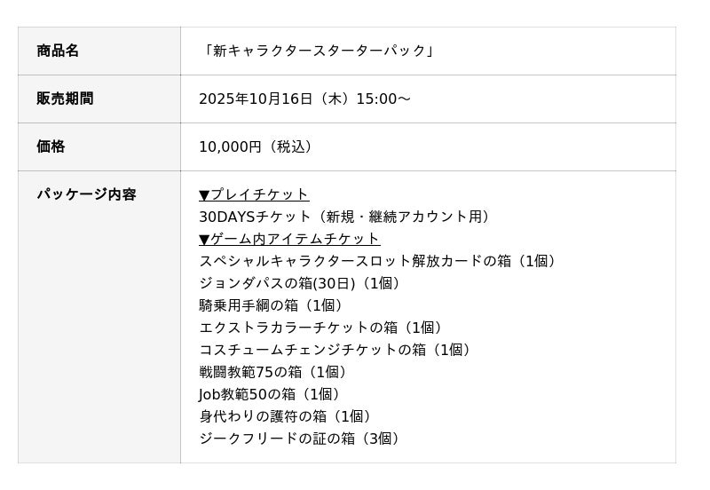 新たなキャラクター作成のスタートを支援する、お役立ちアイテムが詰まったパックです。