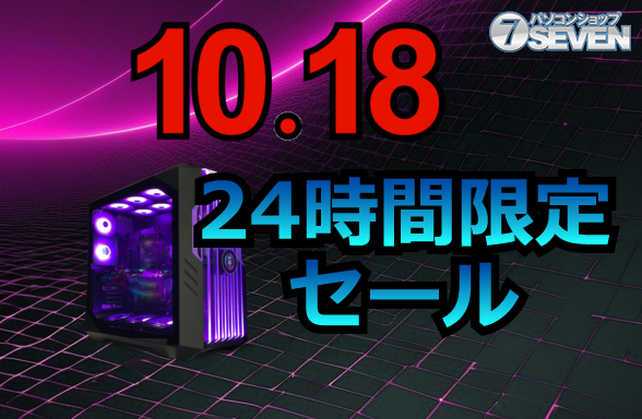 セブンアールジャパンが運営する「パソコンショップSEVEN」は、10月18日限定で『24時間限定セール』を開催する。この1日限定セールでは、最新のゲーミングPCや高性能デスクトップPCが最大70,000円引きで登場する。