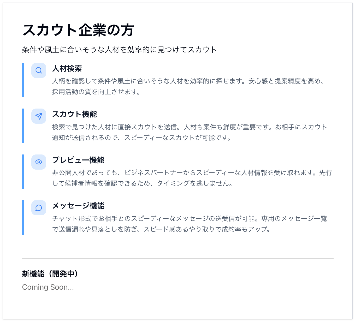 スキル条件だけでなく、「人間味」に共感してスカウトできるので、マッチング精度がアップ。