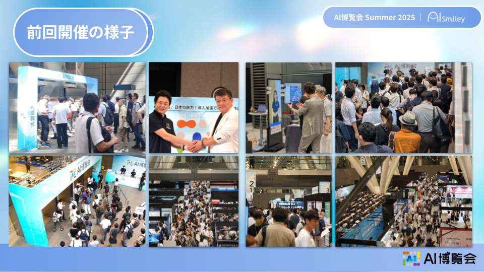 AIsmileyはこれまで、AI博覧会を通じて多くの企業と実践知をつなぎ、AI導入のリアルを発信してきました。そして、次なるテーマとして「AIエージェント」に特化した新たな展示会「AIエージェント博」を開催します。