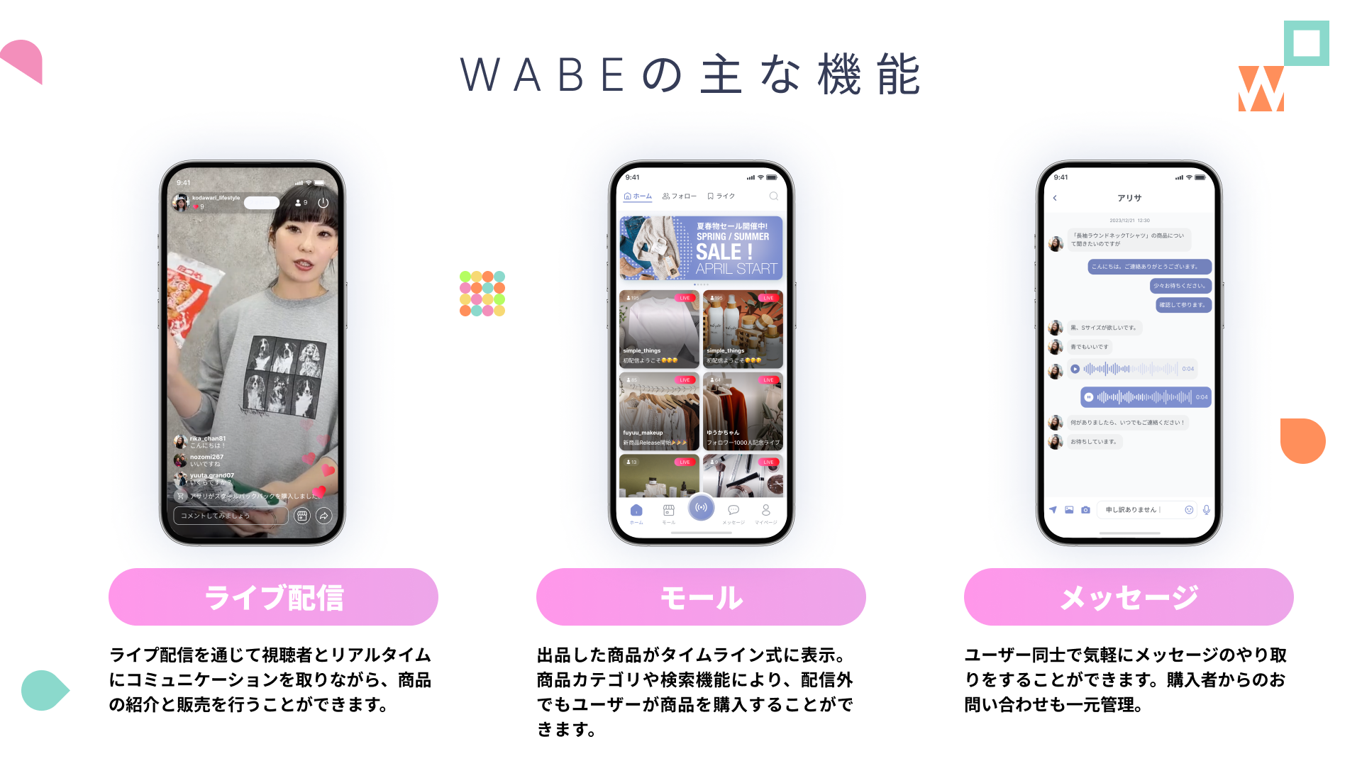 - ライブコマース専用ECモールアプリ「WABE」