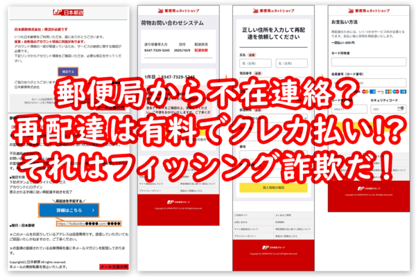 郵便局から不在連絡? 再配達は有料でクレカ払い!? それはフィッシング詐欺だ!