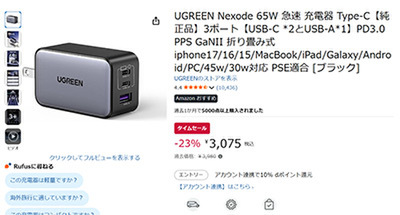 MacBookやノートPCにも急速充電が可能な65Wの高性能充電器「Nexode 65W 急速充電器」が、Amazonタイムセールに登場しました。