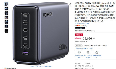 【タイムセール】UGREEN 500W GaN 卓上充電器(240W PD3.1付き)登場!