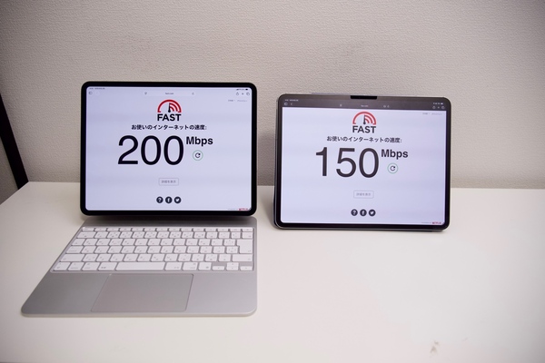 省電力性をうたう一方で、通信速度の大幅な改善が見られました。同じWi-Fi環境で、M4モデルとM5モデルのiPad Proを比較した際、M5 iPad Proは、30%以上の速度向上が確認できます。