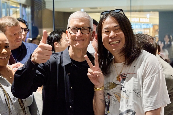 AppleのTim Cook CEOが来日し、大阪・梅田のApple Storeを訪れた際、日本人のアーティスト、細川雄太さんとの会話を楽しんだ様子が印象的でした。iPadで作ったデザインを実際の刺繍を施したスカジャンを見せながら、自身のワークフローをCook氏に紹介していました。