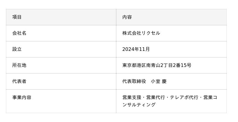 株式会社リクセル(本社:東京都港区、代表取締役:小室 慶)は、営業代行・テレアポ・インサイドセールスの分野に特化した伴走型営業支援サービス『リクセル』(https://rixel.co.jp/)を正式公開しました。