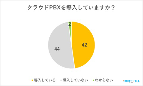 その結果、クラウドPBXを導入していると回答した企業のうち、過半数(約62%)が当社のクラウドPBX「MOT/TEL(モッテル)」を利用していることがわかりました。