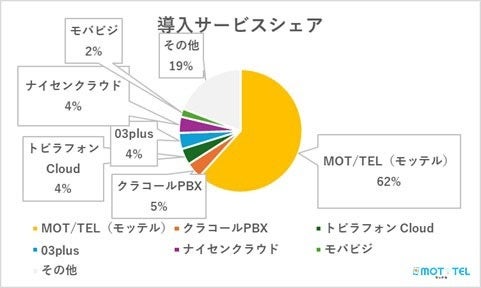 導入しているサービスでは、最も多く利用されていたのは当社の「MOT/TEL(モッテル)」で、全体の約62%を占めました。