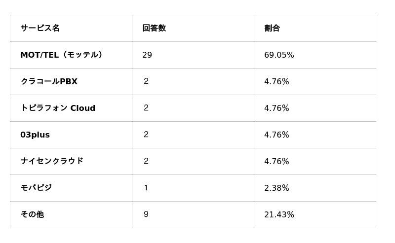 次いで「クラコールPBX」「トビラフォン Cloud」「03plus」「ナイセンクラウド」などの利用も見られました。
