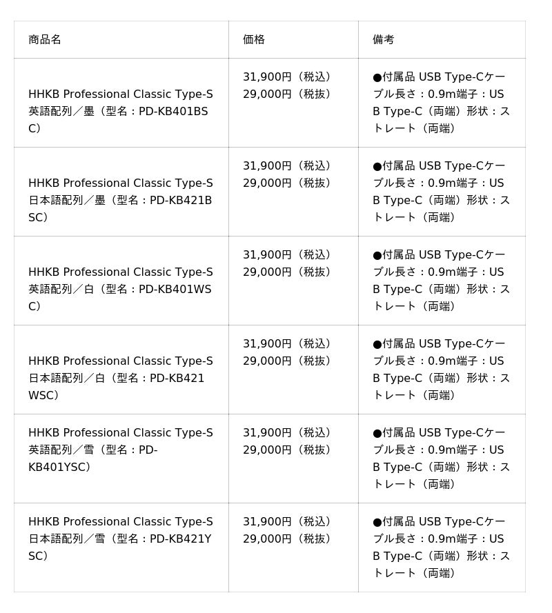 ※1 Professional Classic 英語配列/白(PD-KB401W)については初代モデルの継承として継続販売いたします。