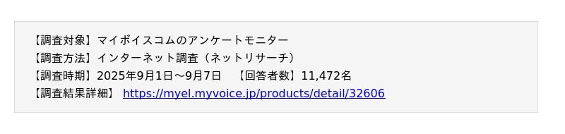 調査結果を掲載・引用いただく場合は、必ず「マイボイスコム調べ」もしくは「マイボイスコム(株)調べ」と表記をお願いいたします。