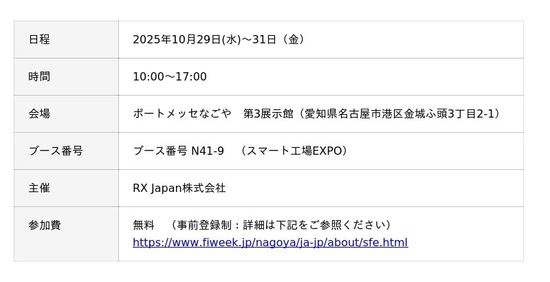ブース番号 :ブース番号 N41-9 (スマート工場EXPO)