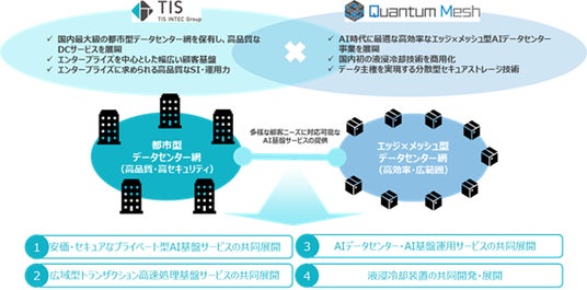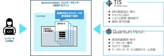 TISインテックグループのTIS株式会社(本社:東京都新宿区、代表取締役社長:岡本 安史、以下:TIS)とQuantum Mesh株式会社(本社:東京都中央区、代表取締役:篠原 裕幸、以下:Quantum Mesh)は、Quantum Meshが提供する分散型エッジデータセンター※1や液浸冷却システム「KAMUI」を活用したAI基盤サービスの開発・展開を目的とし、2025年10月より協業を開始することを発表します。