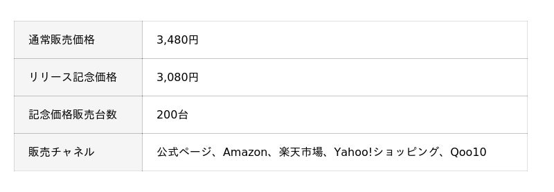 発売を記念して200台限定で、通常販売価格3,480円のところ、リリース記念価格3,080円にて販売いたします。