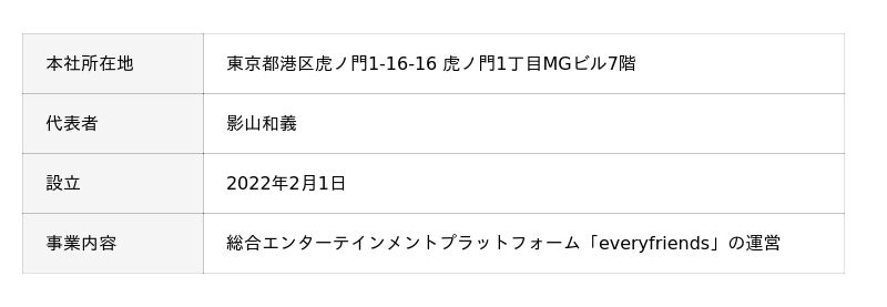 エブリライブ株式会社 会社概要