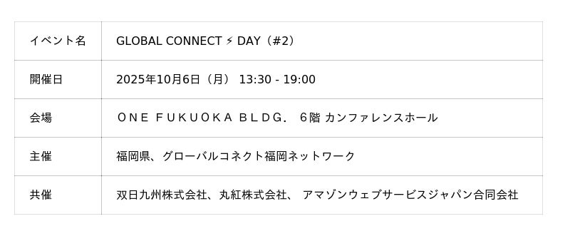 生成AIソリューション事業を展開するアンドドット株式会社(本社:東京都渋谷区、代表取締役:茨木 雄太)及びアンドドットネット(本社:福岡県福岡市)は、当社CTOである高根沢 光輔が2025年10月6日(月)福岡県主催の「GLOBAL CONNECT ⚡ DAY(#2)」に登壇したことをお知らせします。