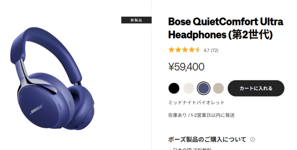 QuietComfort Ultra Headphones(第2世代)は6万円弱と、ハイエンド帯に位置するモデルです。この価格帯は、ソニー「WH-1000XM5」やSennheiser「MOMENTUM 4」など、どれも個性的で完成度の高いライバルがひしめいています。
