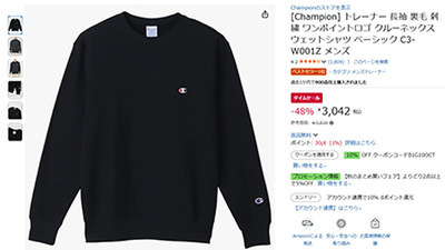「キング オブ スウェットシャツ」と評されるChampion(チャンピオン)の定番トレーナー「C3-W001Z」が、Amazonタイムセールに登場しました。