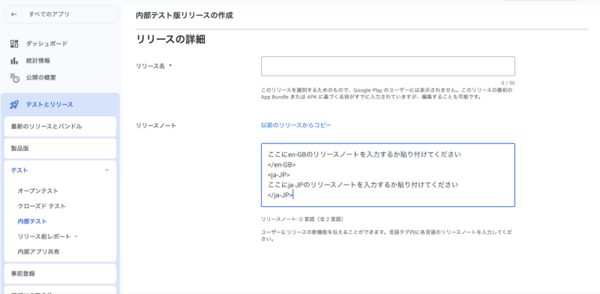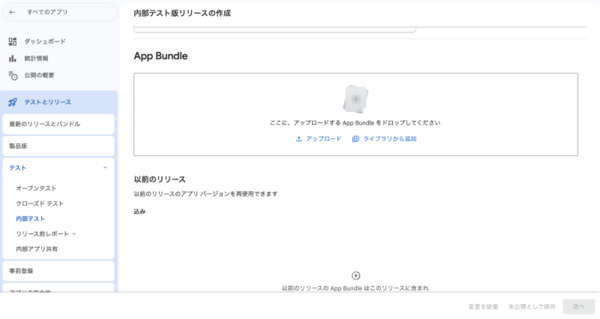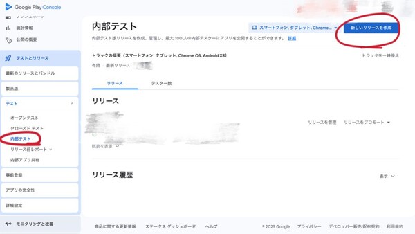 1. テストとリリース→ 内部テスト → 新しいリリースを作成