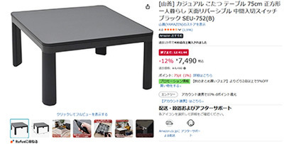 寒い冬の準備はできていますか? 山善のカジュアルこたつテーブル「SEU-752(B)」が、Amazonタイムセールに登場しました。