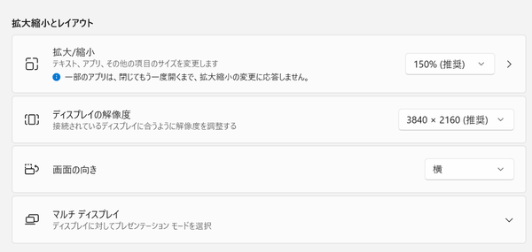 Windowsの設定で「拡大/縮小」機能を使えば表示が大きくでき、文字も読みやすくなるが、これは解像度を落としたのと同じことで、情報量が減ってしまう。これでは、何のために高解像度ディスプレーを選んだのか、わからなくなるだろう。