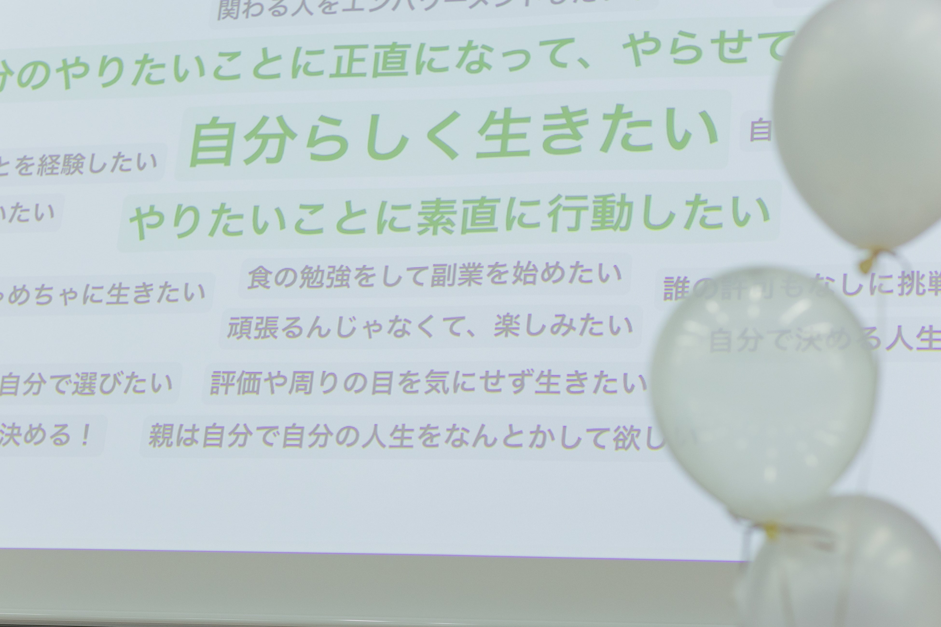 第4部を通じて、参加者それぞれが自分なりの幸せの定義を明確化し、同時に他者の多様な価値観を受け入れる寛容性を育む機会となりました。会場に映し出された参加者の思いや感想が、イベント全体をあたたかく包み込み、新たなつながりと共感の輪が生まれる瞬間となりました。