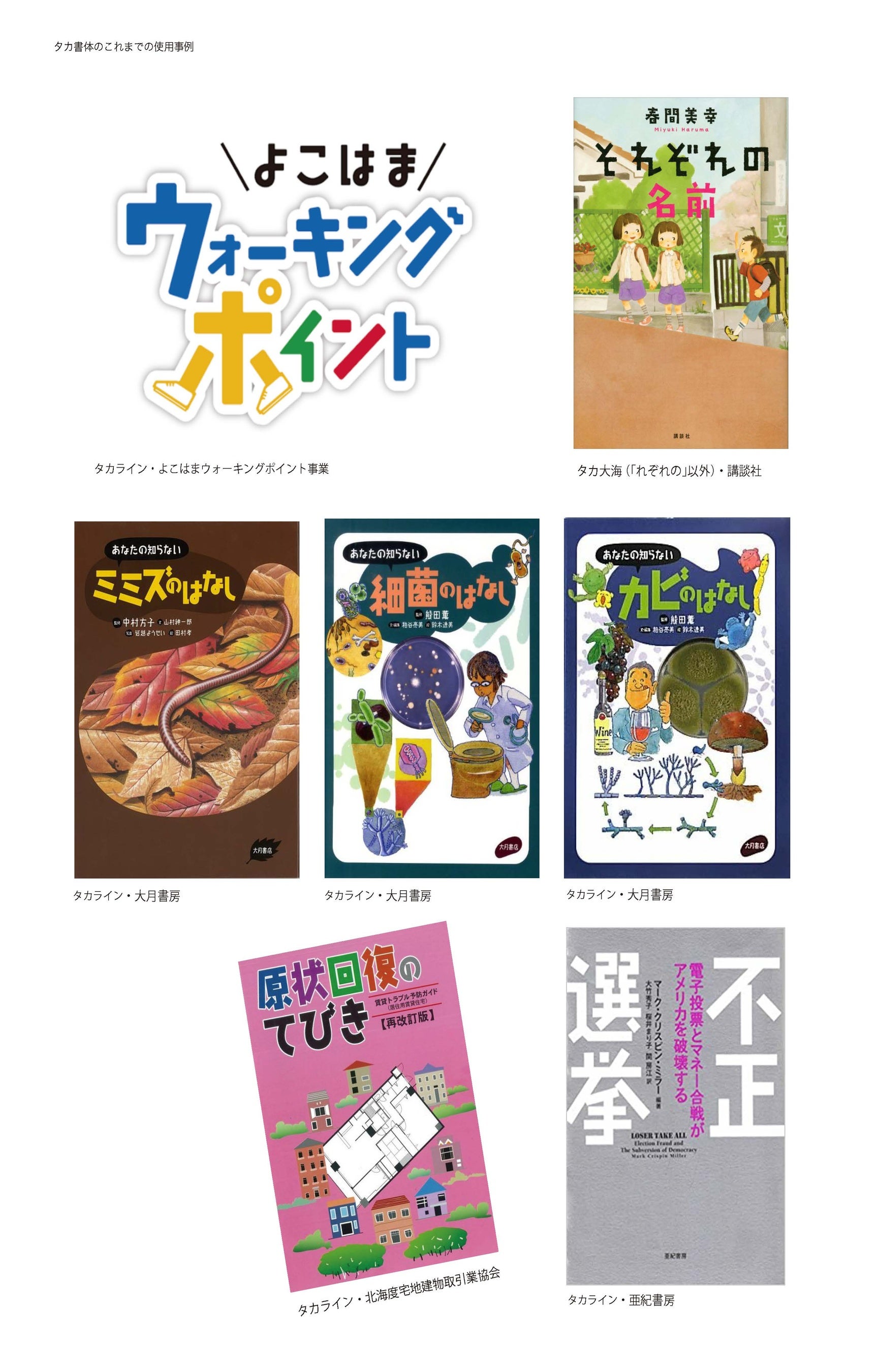 「タカ書体」は、タイプデザイナー 高原新一氏(札幌市在住)が手がける日本語フォントブランドです。