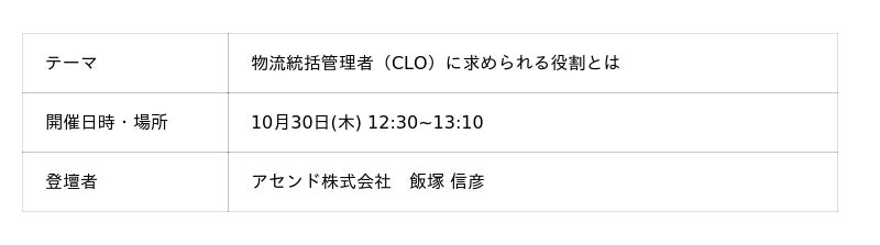 本展示会では、当社製品『ロジックス』の最新機能が体験できるブースをご用意しております。あわせて、CLO(物流統括管理者)の設置義務化を見据えた解説セミナーも開催いたします。