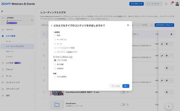 この機能では、ウェビナー内容のキーポイントを自動で要約したり、メールやSNSへの投稿文を作成したりすることができる。さらには「ブログ記事」「営業資料」「社内向け要約」などの形式でもまとめられる。文章量もワンクリックで調整可能だ。参加者に迅速なアクションを取ることで、エンゲージメントがさらに高まる。