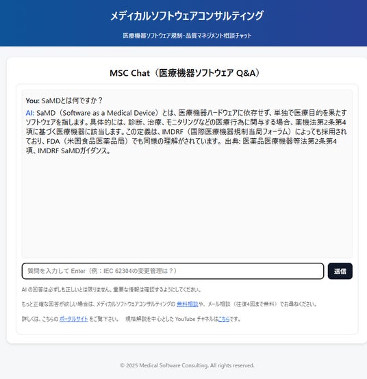 名称:MSC Chat(医療機器ソフトウェア Q&A)