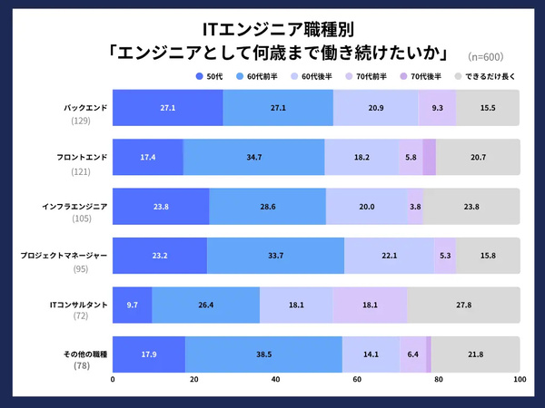 [エンジニア][キャリア] 40代ITエンジニアの3割が「早期リタイア」を望む一方、60代の7割は「定年後も就労」希望(レガシーフォース、10月20日)