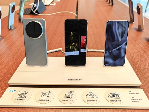 訪問したのは10月11日でしたが、翌週、15日に発表予定の最新カメラフォン「Magic8 Pro」もフライングで展示されていました。実は最近、中国では正式発表前に実機展示するメーカーが増えているんです。ただし、発表前なのでスペックや価格の表示はありません。ですが、スタッフは「これが最新モデルですよ」と教えてくれました。
