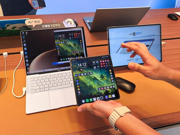 日本に未上陸のHONORの製品の中でもノートPCはなかなか触れない製品です。薄型モデルなど多数の製品を出しています。またHONORとファーウェイのスマートフォンをPC上でシームレスに接続するデモも実演してくれました。Magic V5なら画面を閉じた状態から開いた状態にしても、PCの画面上に表示したMagic V5の画面も同様にアウト画面とメイン画面が切り替わります。