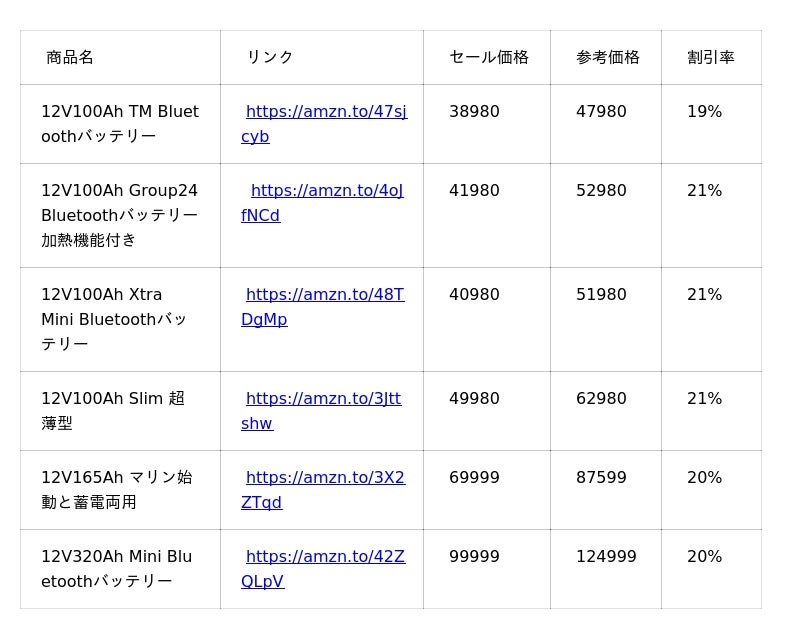 ●バッテリーと充電器、インバーターなどの関連製品をまとめ買いでさらに5~10%割引