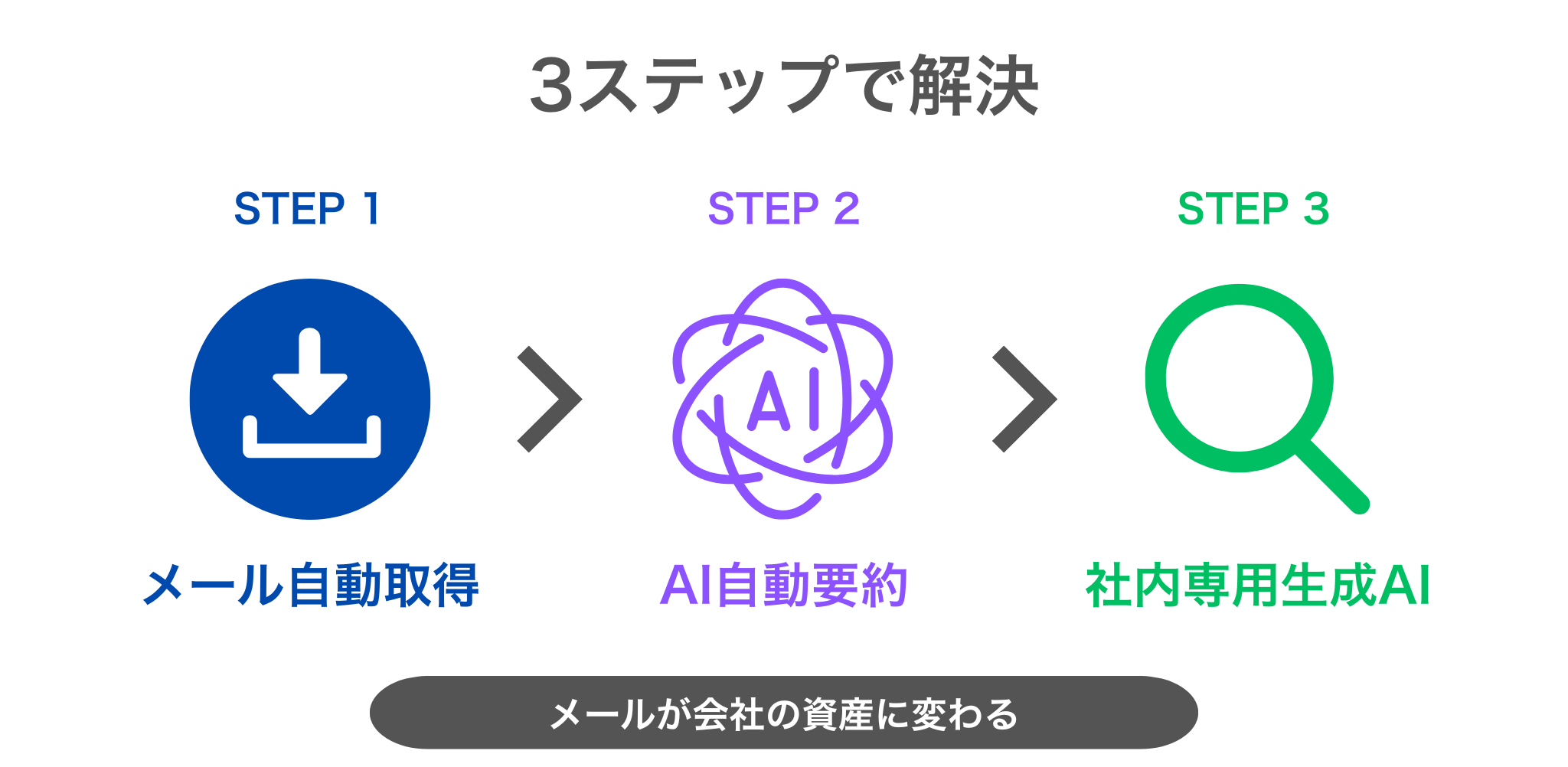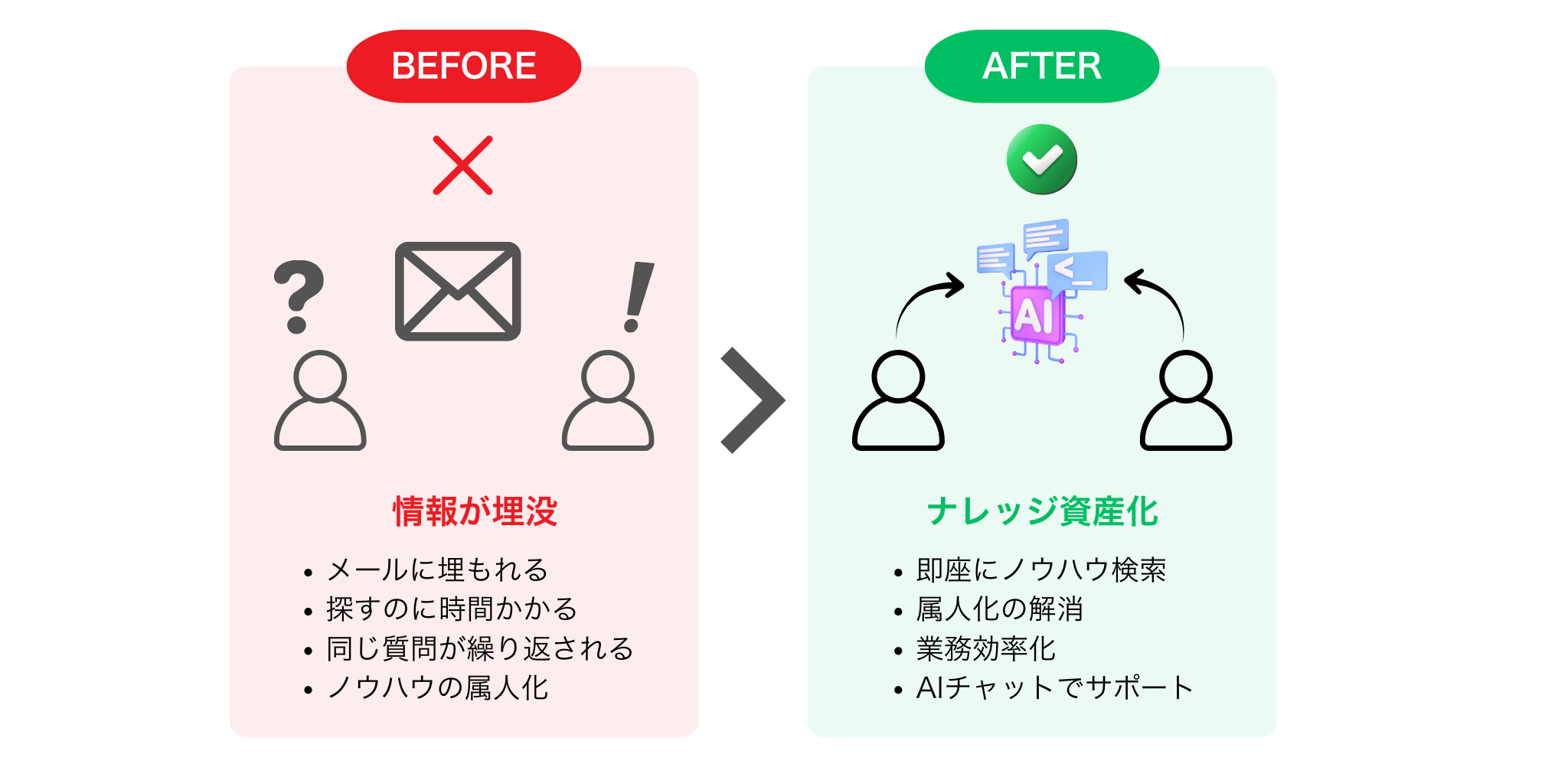 散在するメールのやり取りをAIで要約・検索。社内ノウハウの見える化と属人化の解消を目指す