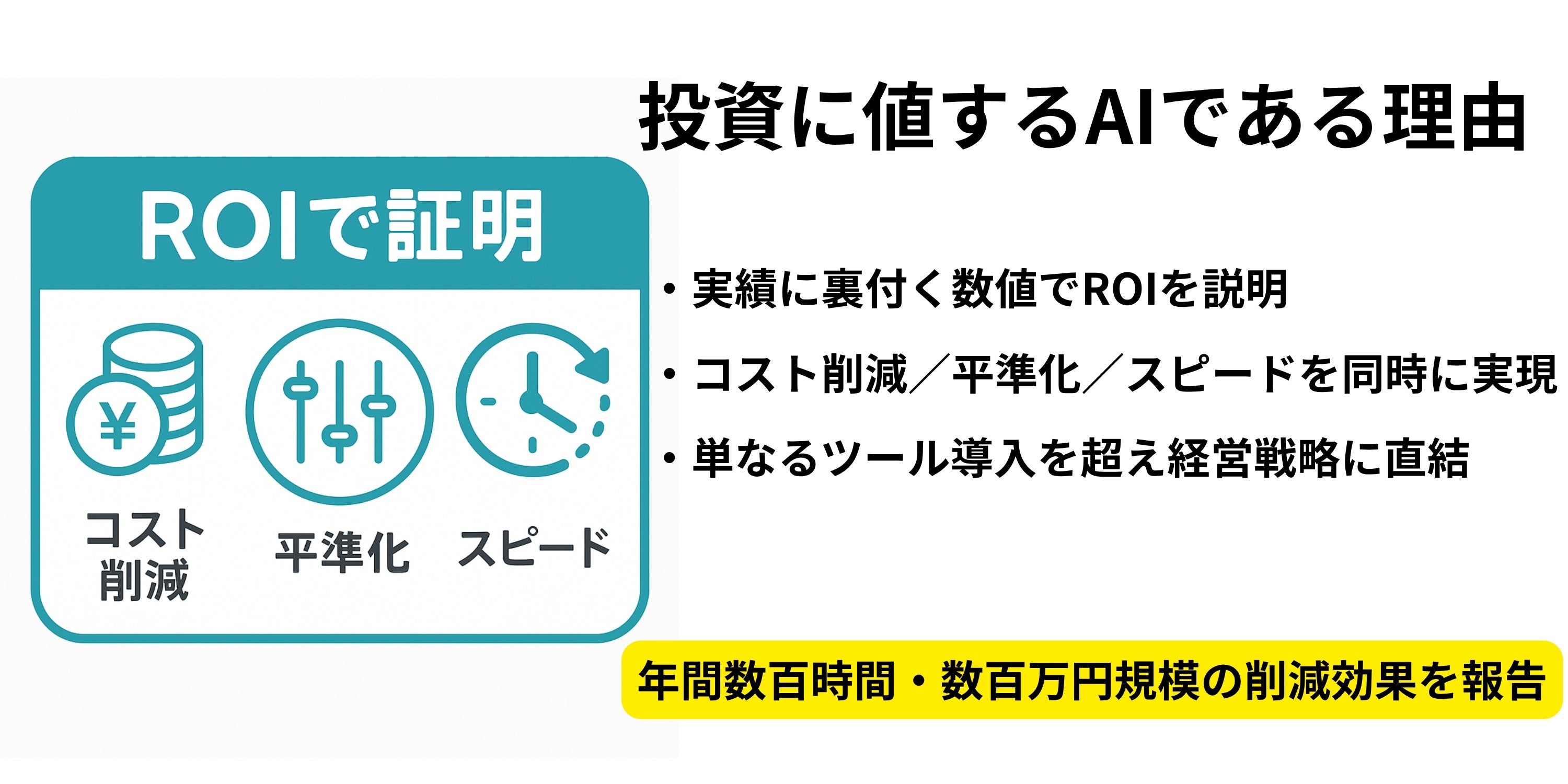 「AIに投資すべきか」「どのツールがROIを最大化できるのか」その答えを出すために必要なのは、便利さの訴求ではなく、費用対効果を数値で示す説得力です。