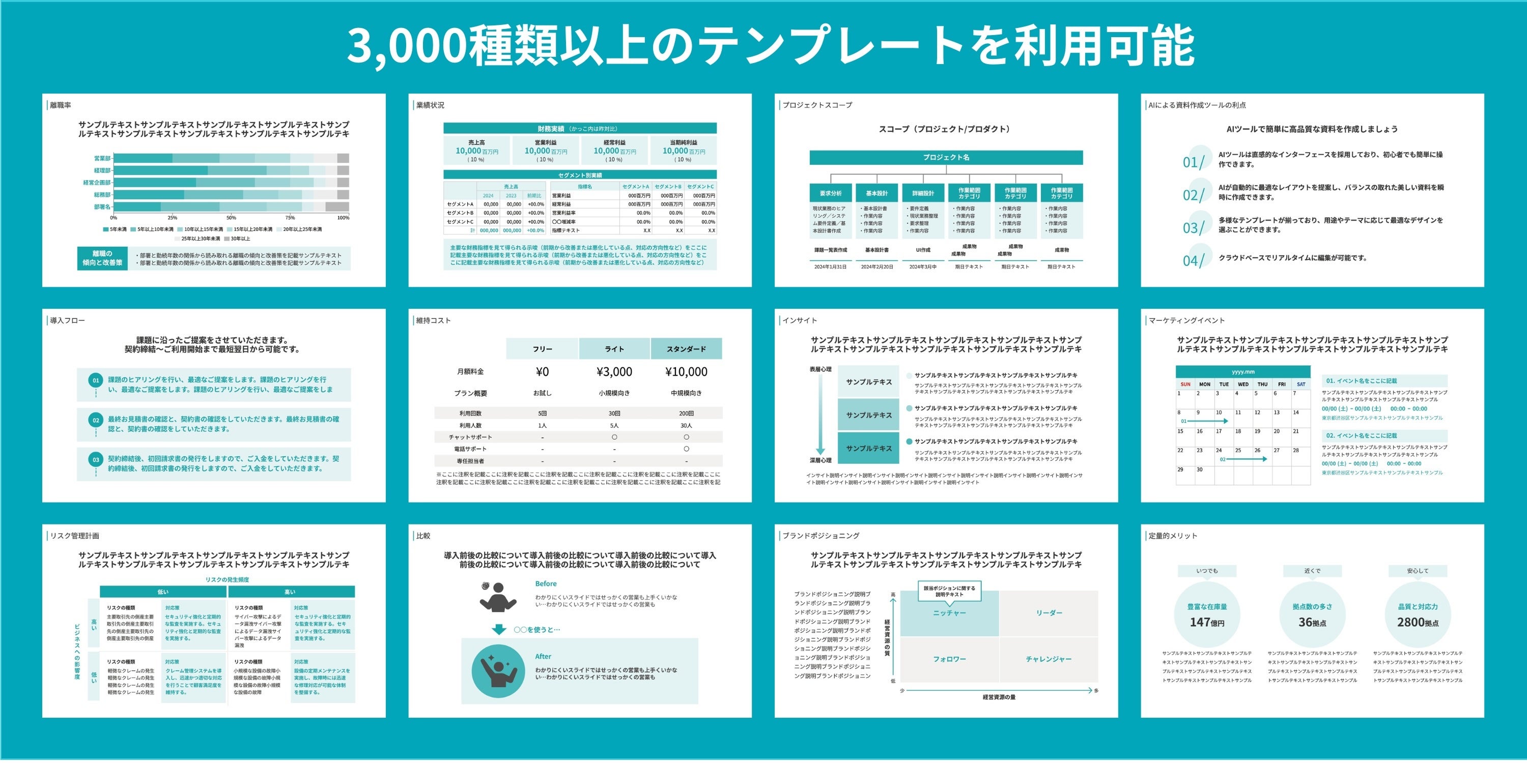 「チームライブラリ」機能でテンプレートを統一し、資料品質のばらつきを防止。属人化を解消し、全社的なガバナンスと再現性を確保。