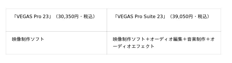 製品名、価格:「VEGAS Pro 23」(30,350円)