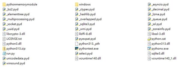 別のZIPアーカイブのsmtpB.zipには、Pythonインタープリター、サポートモジュール、および悪意のあるPythonスクリプトが含まれています(図14)。このスクリプトはダウンローダーの役割を担い、ペイロードをディスクに書き込むことなく、メモリに直接ロードします。これを実現するために、GitHubのPythonMemoryModuleプロジェクトが利用されています。