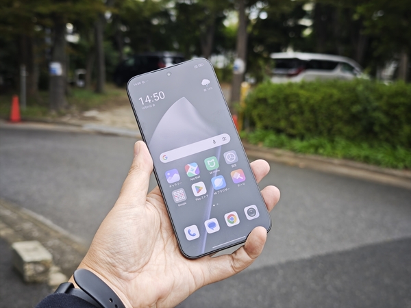 前年モデルと比べて横幅が約78mmとやや大型化しています(Xiaomi 14T Proは75mm)。グローバル基準では一般的なサイズですが、手の小さい方や片手操作を重視する人には少し持ちにくく感じるかもしれません。大きさのメリットは画面の見やすさやバッテリー容量の増加ですが、そのぶん、重さや取り回しの面で注意が必要です。一方で細かな部分ですが、ディスプレーの額縁が細くて、しかも四辺均等なのは◎です。