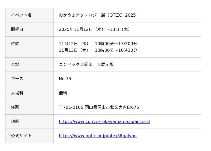 製造業のものづくりを支援!ジェイテックが11月12日~13日開催の「おかやまテクノロジー展(OTEX)2025」で実践的なソリューションを展示