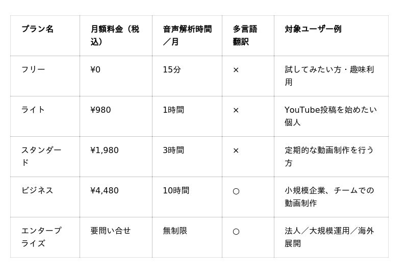 無料の「フリープラン」にご登録いただくことで、月15分の音声解析まで無料でご利用いただけます。
