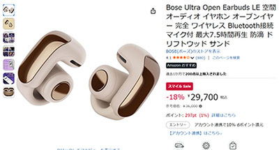 周囲の音を聞き逃すことなく、自分だけの音楽空間に浸りたい方へ!Bose(ボーズ)の画期的なワイヤレスイヤホン「Bose Ultra Open Earbuds」が、Amazonスマイルセールに登場しました。